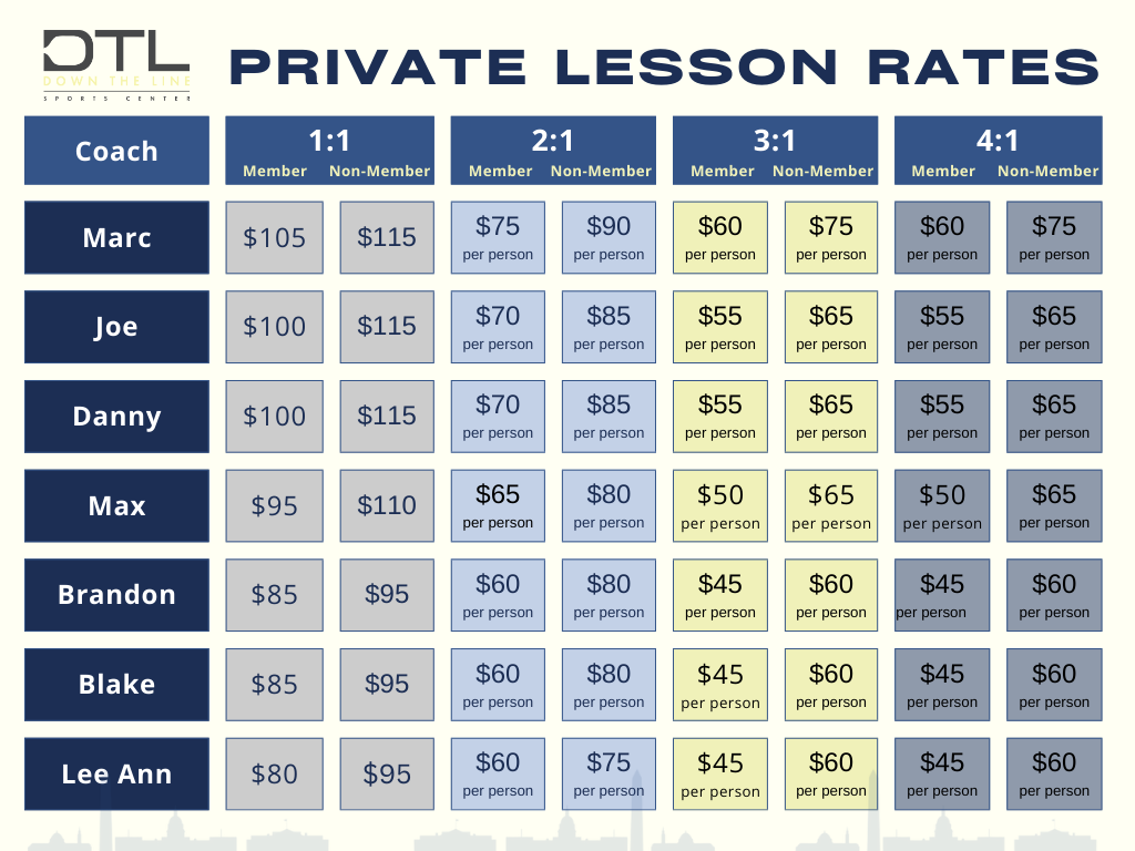 DTL Coach Private Lesson RAtes